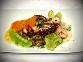 POLVO AO MOLHO ROMESCO E LENTILHAS