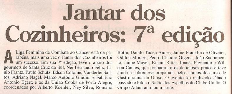 Riovale Jornal Publicado em 3 de agosto de 2011 por Private Cook Riovale Jornal -Santa Cruz do Sul, 7 de agosto de 2009, coluna “Sociais com Silvia” Compartilhe isso: Compartilhar no X(abre em nova janela) 18+ Compartilhar no Facebook(abre em nova janela) Facebook Curtir Carregando... Relacionado