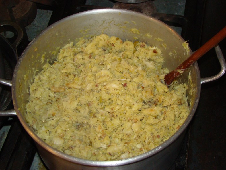 Manhã de domingo, bacalhau dessalgando, chimarão e a campainha chamando. Um, dois,… derrepente éramos 14, casa cheia, conversa se cruzando, musica alta, cachorro latindo, mas o que imperava era a alegria. Chimarão foi trocado pelo vinho, homens na cozinha, rodinha de bate papo das mulheres, e vejam o resultado: