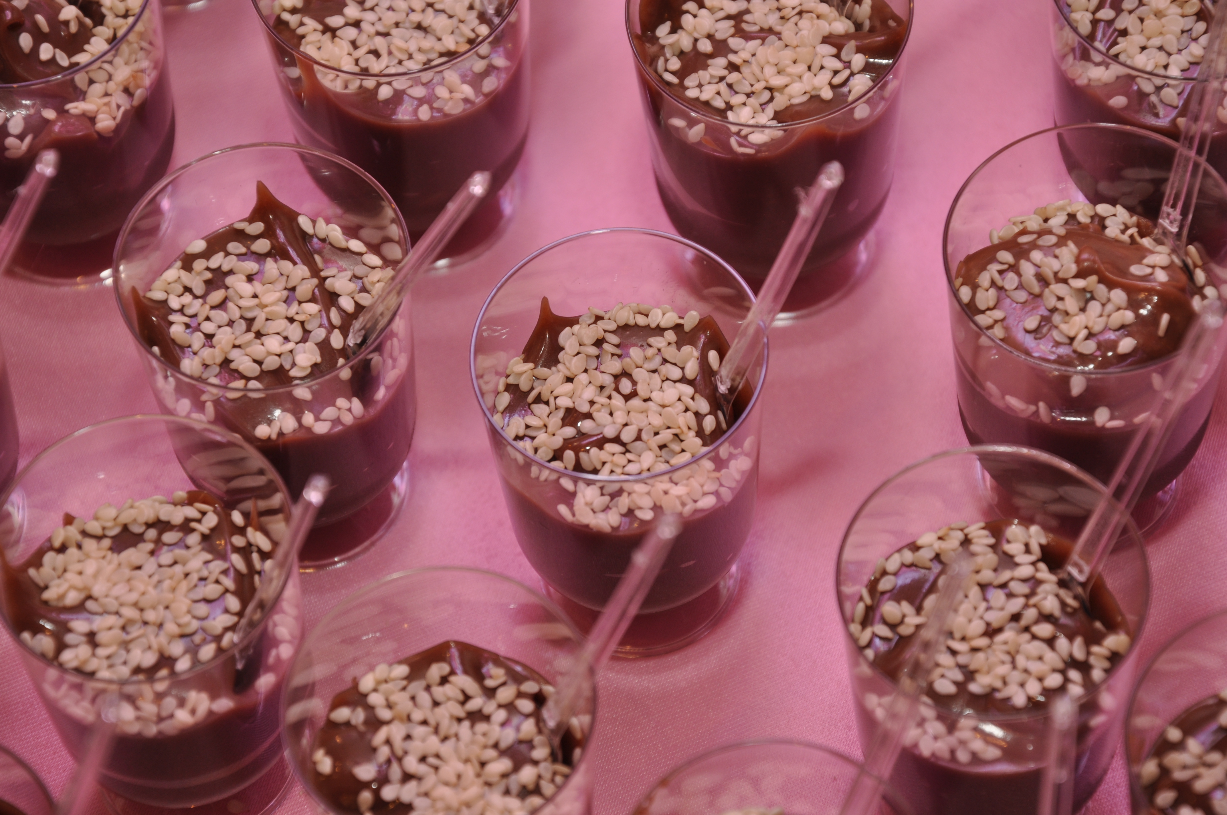 Coloque todos os ingredientes em uma panela e leve ao fogo mexendo até que o chocolate derreta por completo. Retire do fogo, distribua em copinhos e polvilhe gergelim ou cacau.