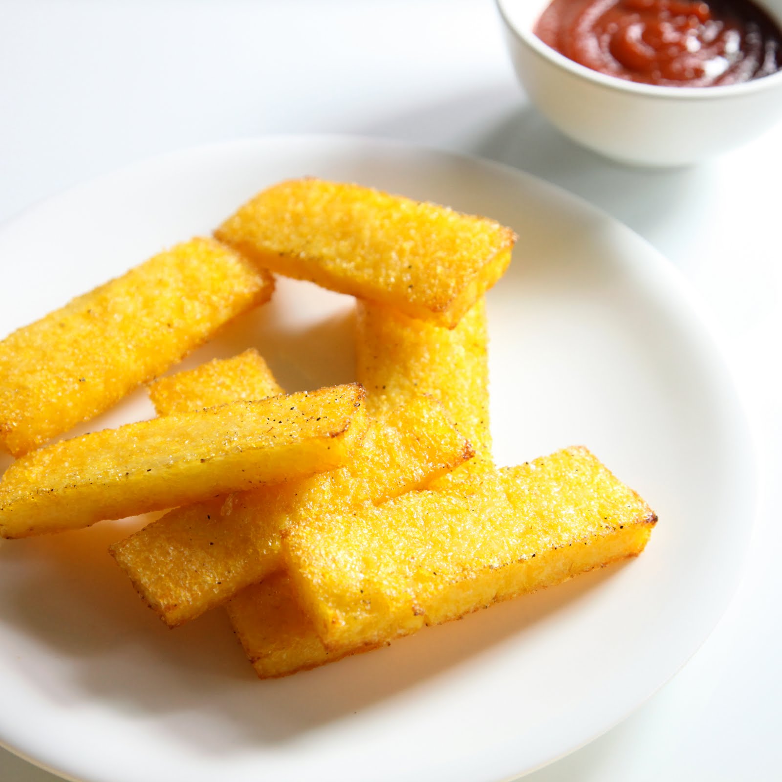 2. A polenta frita ficará mais macia e com uma crosta crocante se você passar na farinha de trigo antes de fritar.