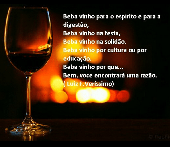 O vinho é o companheiro que: na tristeza sofre contigo calado, sem emitir juízo de valor sobre tua dor e na alegria tem o poder de maximizar a felicidade sentida. Santa Inês Caetano