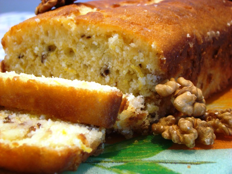 Numa vasilha, bata a manteiga, o açúcar e os ovos até ficarem leve e fofo. Adicione o leite e a mistura de farinha aos poucos, misture bem. Acrescente a casca de limão e as nozes.