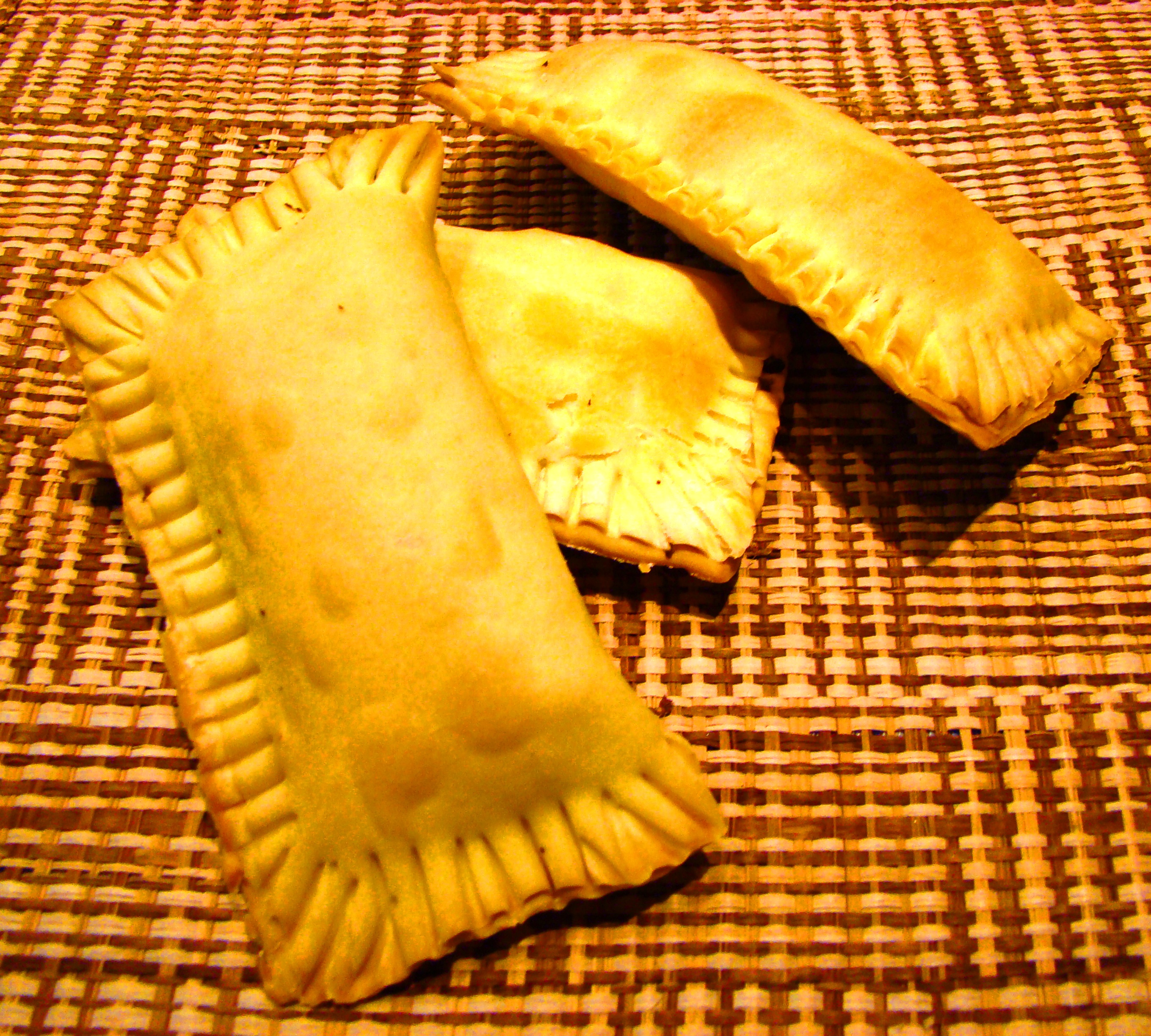 -Coloque a mistura de carne sobre a massa recortada, pincele as bordas com o ovo batido, feche bem. Arrume os pastéis em uma assadeira, pincele com ovo batido, cubra e leve à geladeira, cerca de 30 minutos. Assar em forno quente (200°) até ficarem dourados.