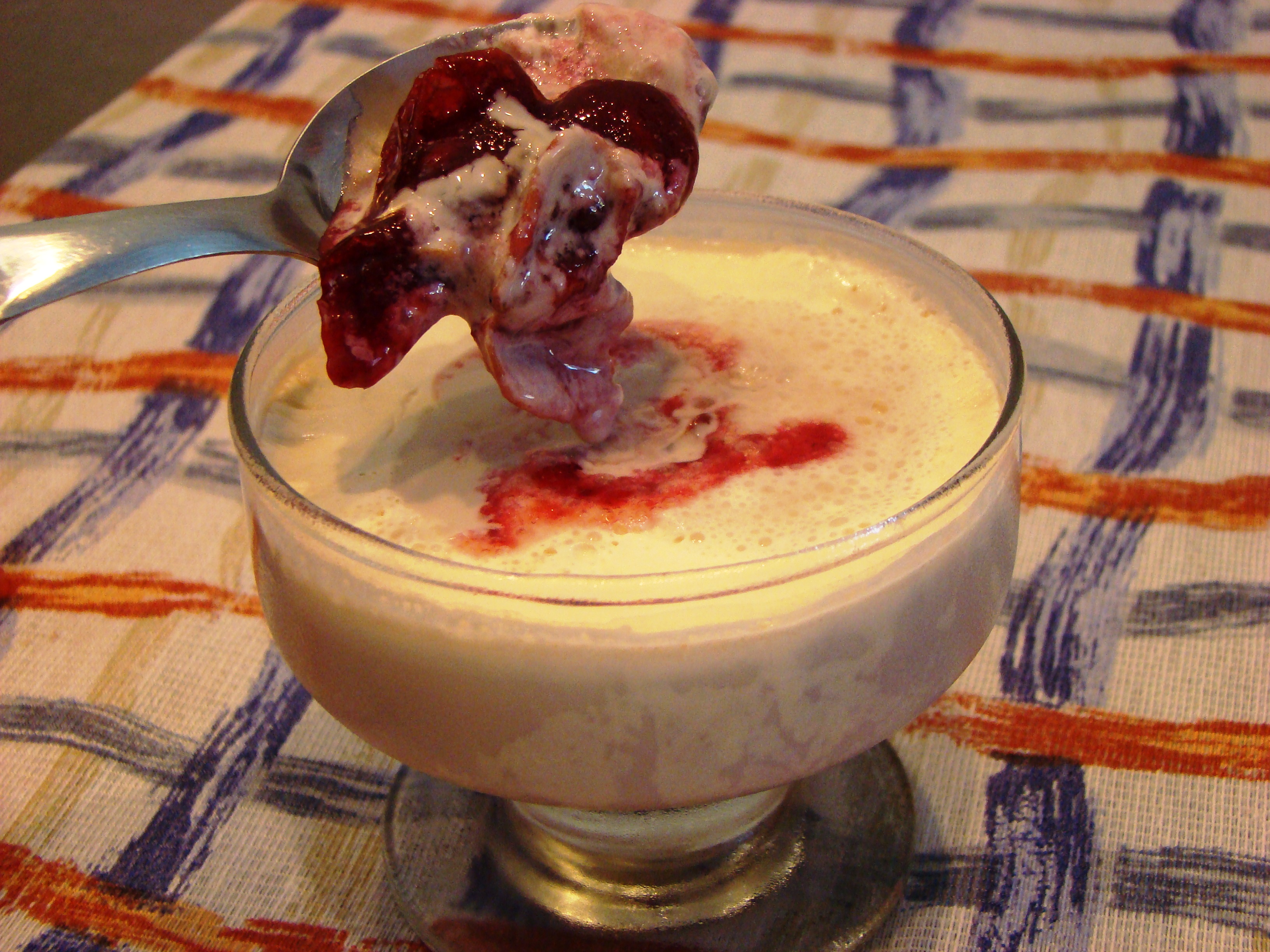 -Bata no liquidificador 2 ½ xícaras de suco de uva com o leite condensado, o creme de leite e a gelatina dissolvida, bata bem e distribua em taças individuais (6 porções) e leve a geladeira.