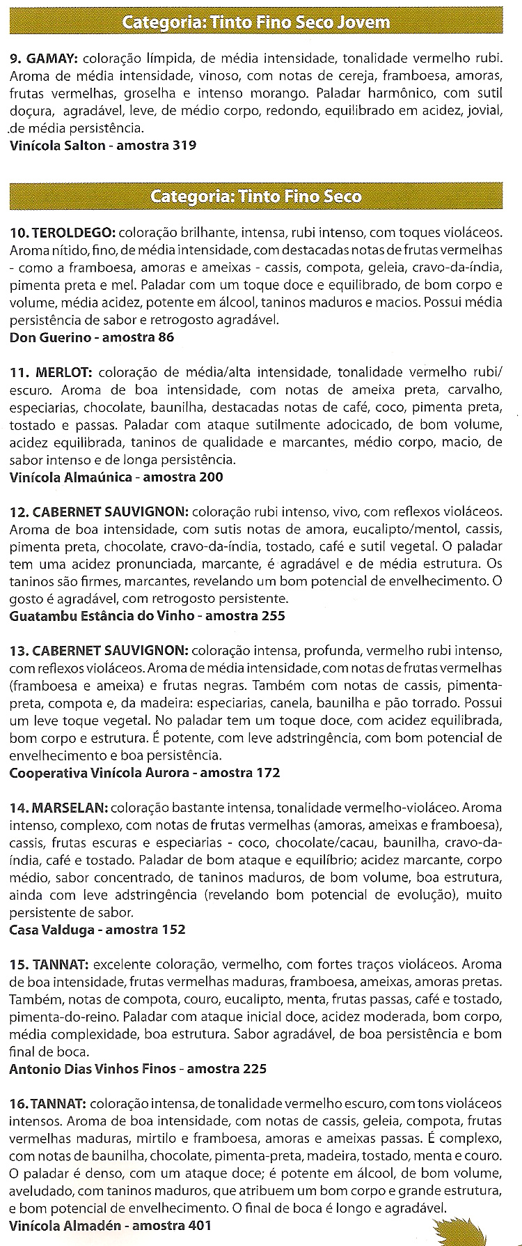 Após degustarmos as amostras tivemos certeza de uma safra que entra para a história do setor vitivinícola, pela qualidade elevada da produção favorecida pelas condições naturais, que permitiram que as uvas ficassem mais tempo no pé e, por consequência, adquirissem maior maturação. Isto fez com que as características: Grau Babo, acidez, aroma, tanino e polifenóis entrassem em delicada sintonia resultando em vinhos de excelente qualidade.