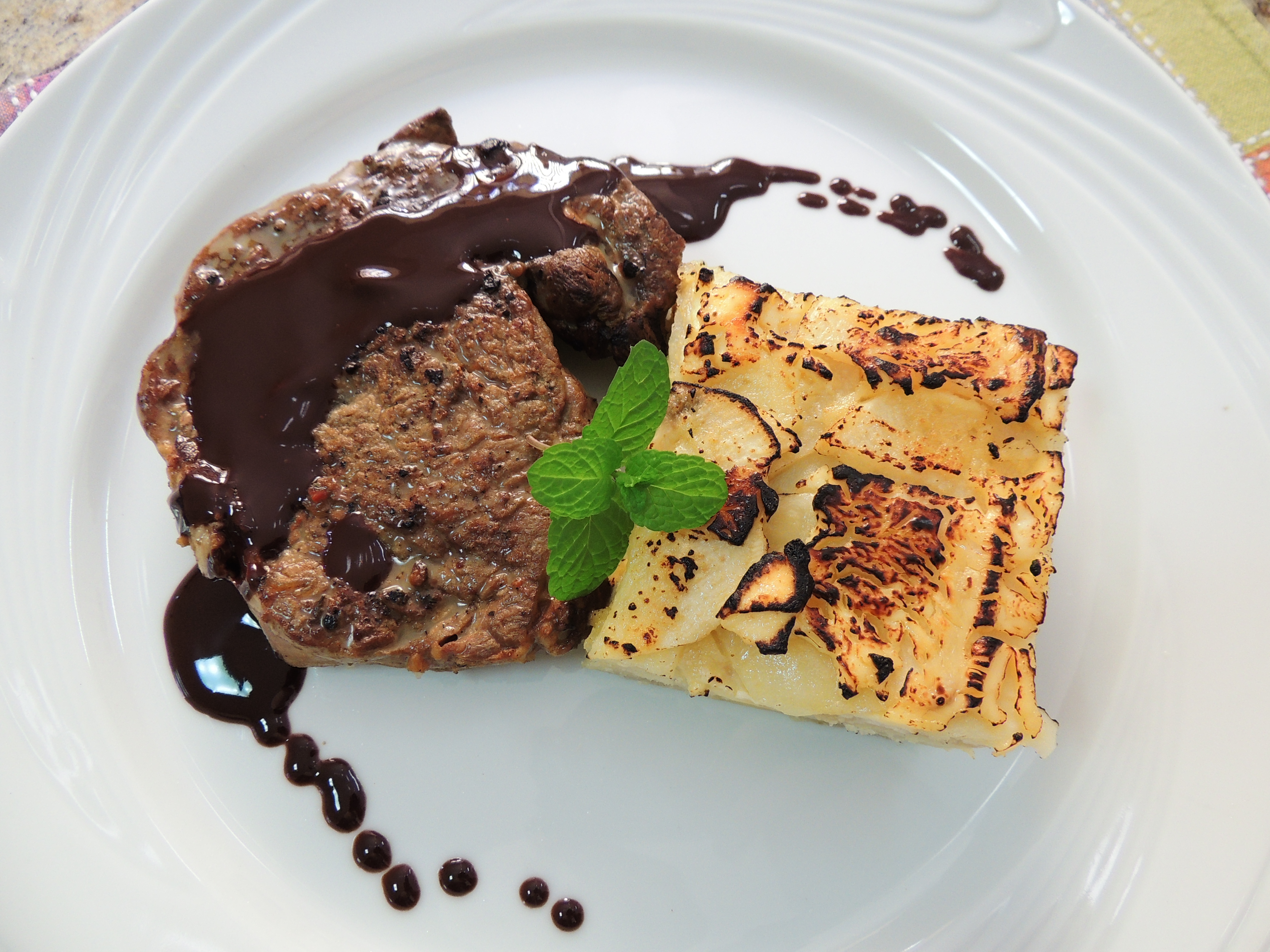 – Colocar o aceto balsâmico em uma panela em fogo brando e deixar ferver. Agregar o chocolate e deixar reduzir, mexendo sempre até engrossar. Corrigir o sabor com sal e pimenta do reino.