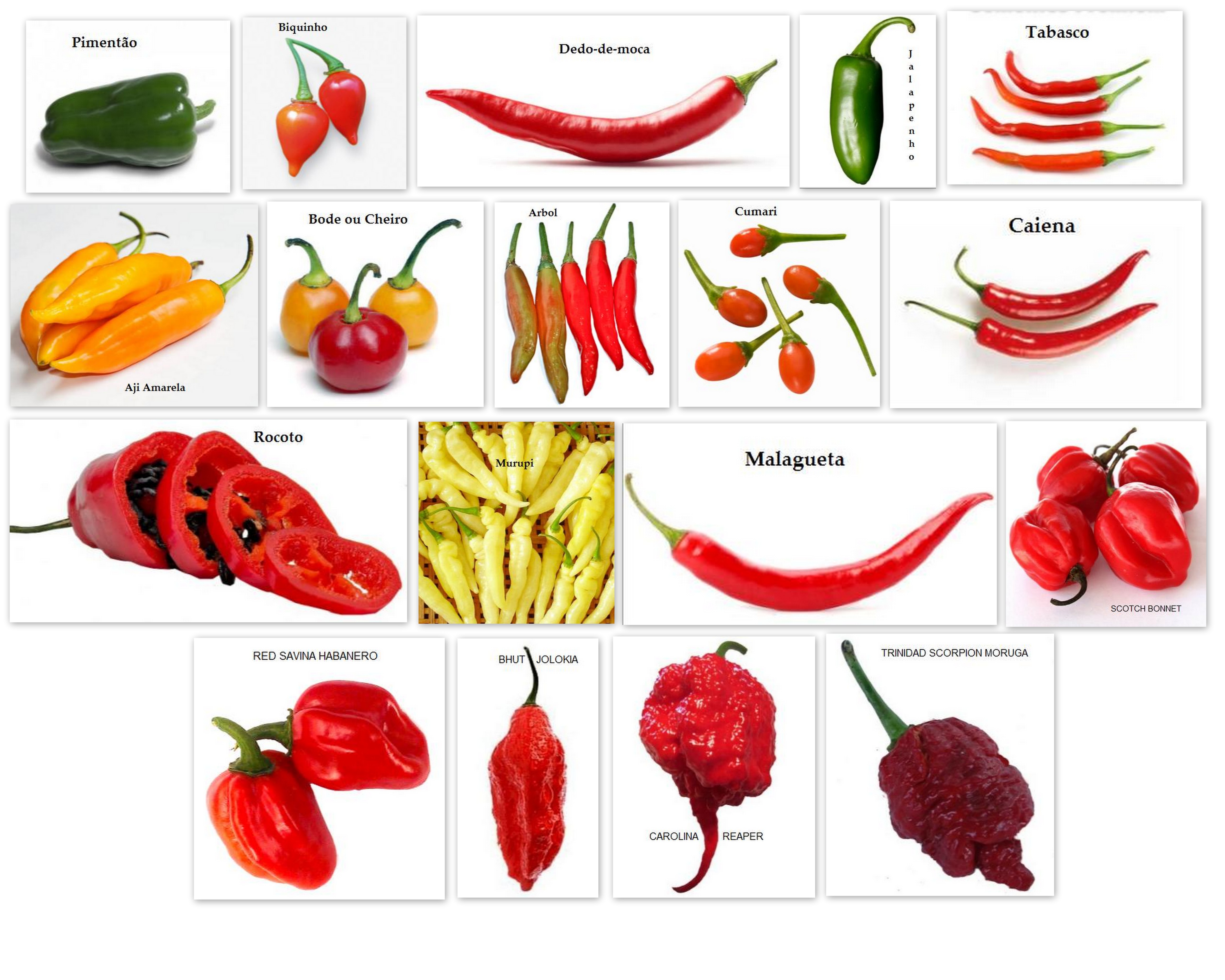 Nessa escala de ardência, mostramos a classificação de algumas das pimentas mais conhecidas no Brasil, em ordem crescente de ardência: