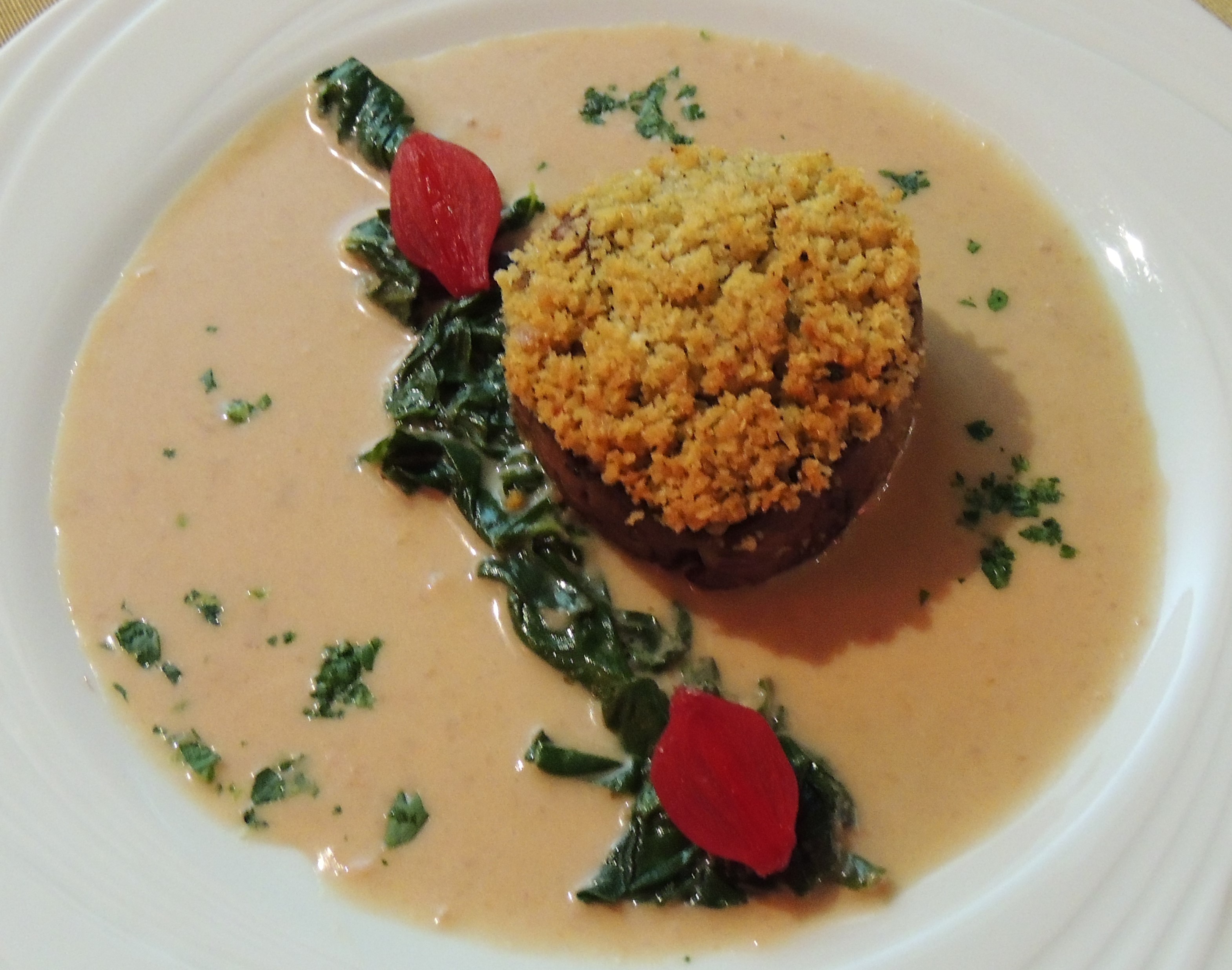 Adicione o vinagre balsâmico e o vinho branco e deixe reduzir, acrescente o restante da manteiga, o creme de leite e a mostarda.