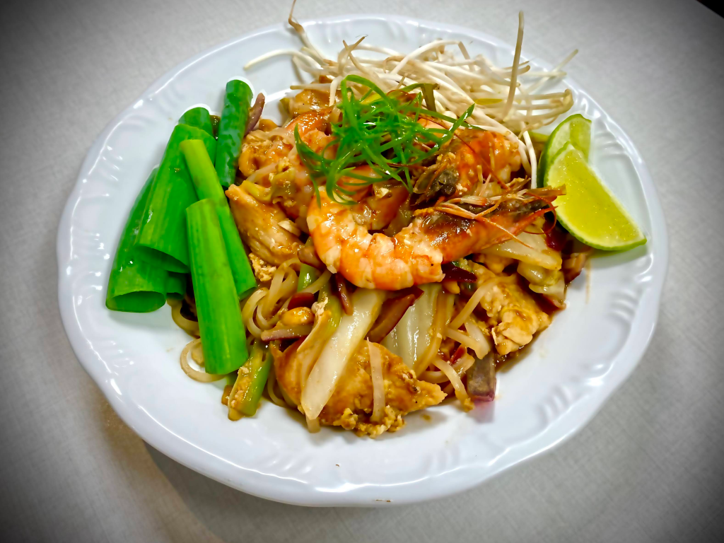 –Adicione os brotos de feijão e a cebolinha e mexa para misturar. Sirva de imediato, com amendoim, a pimenta em pó e as rodelas de limão para ajustar os temperos a gosto.