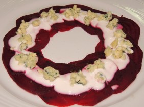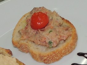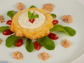Tartelete de queijo de cabra e cebola roxa caramelizada com vinagre de amendoim