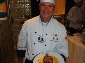 Entrecot com molho de chocolate e mil folhas de batata doce