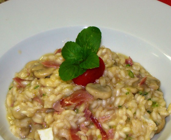Risoto de Presunto Parma, Cogumelos e Queijo Brie