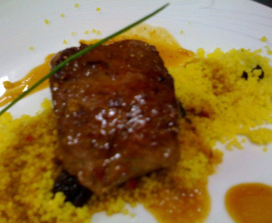Lombo de Cordeiro Grelhado ao Molho de Maracujá, Hortelã e Pimenta Sobre Couscous Tunisiano.